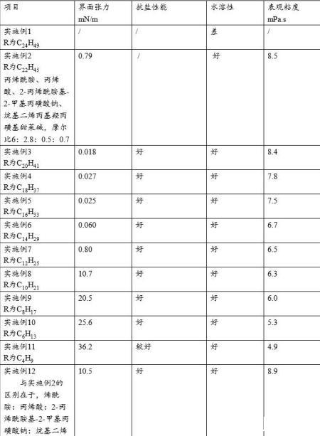 不同兩性聚合物界面張力、溶解性能及抗鹽性檢測結(jié)果
