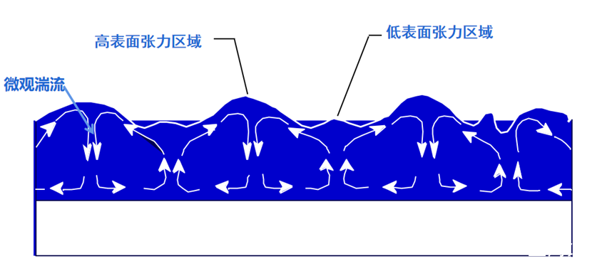 在液相涂層,在漆膜干燥過程中存在著微觀湍流。先干區(qū)域往往更多表現(xiàn)為樹脂本身的表面張力,液相部分還是保持有機(jī)硅或者氟添加劑的表面張力。低表面張力的液態(tài)部分會有強(qiáng)烈的向高表面張力的區(qū)域遷移的傾向,這樣的效果累積起來就會容易出現(xiàn)橘皮或者波浪紋!
