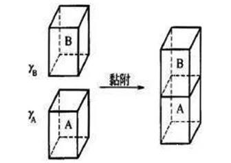 第一種方式,黏附方式。兩種不同的液體,液體A和液體B,互相相接觸后,兩者和氣體形成的表面同時(shí)消失,形成液體A和液體B之間的界面,也就是液液界面(AB)的過(guò)程,這就是黏附過(guò)程。該過(guò)程如圖2所示。