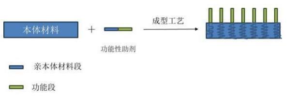 1.脫模劑通過親本體材料段和功能段嵌段共聚的方式,使得功能助劑經(jīng)親本體材料段牢固地懸掛在本體材料表面。