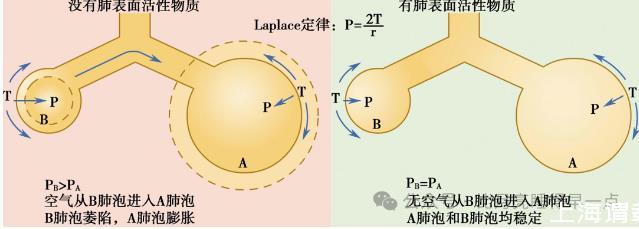 由上述公式可知,在T相同的情況下,肺泡半徑r越大,則肺泡液氣界面的壓強越小;肺泡半徑r越小,則肺泡內(nèi)液-氣界面的壓強越大。