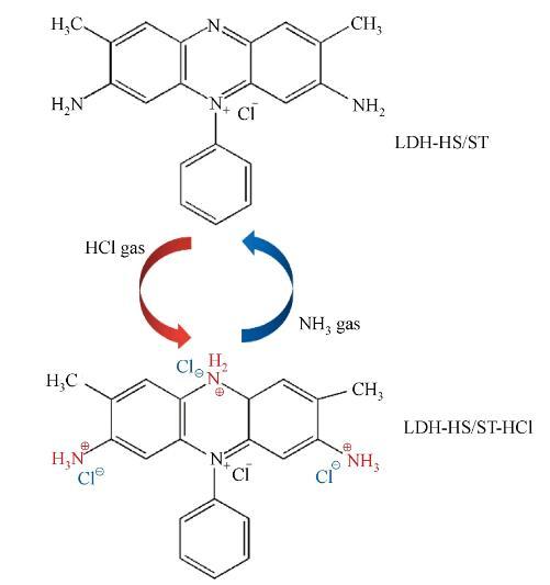圖1 HCl和NH3氣體對LDH-HS/ST LB復(fù)合膜的化學(xué)反應(yīng)機(jī)理