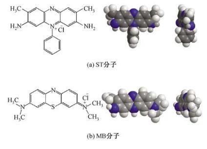圖2 ST和MB染料分子結(jié)構(gòu)圖及空間模型