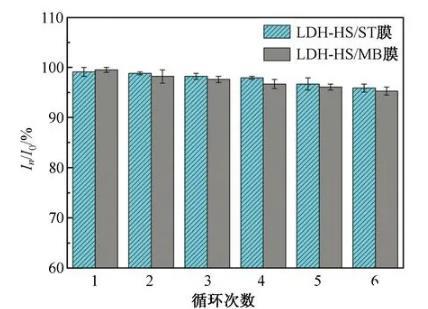 LDH-HS/染料復(fù)合膜酸致變色循環(huán)使用性分析