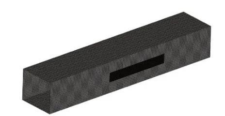 為了避免系統回流的影響,建立一個長×寬×高為50 mm×10 mm×10 mm的流場模型,采用結構化網格,如圖2所示。通過fluent的Eulerian模型、層流模型、Carreau黏度模型、壓力求解器,對PS/POE液液兩相流進行仿真分析。由于實驗時間較長,采用瞬態求解法,忽略重力、浮力、密度差、加熱不均帶來的影響。入口設置為速度邊界條件,出口邊界為壓力出口,流場上下前后4個面為周期邊界條件。為了確保仿真過程的準確性和經濟性,以及獲得兩相流真實的分布情況,首先對網格無關性進行研究??紤]3種數量(150×104、190×104、230×104個)的網格進行研究。當網格數量太少時,無法細致描述液滴表面處的形態(橢球型)。通過數值模擬,分析了液滴回縮時間t。從表2中可以看出,網格數量對于計算結果的影響很小,同時考慮到數值模擬計算的時間和經濟性,采用190×104個網格。收斂時間的判斷依據殘差圖以及液滴形態兩個標準,計算每一步的殘差值設定為10-3,同時設置主視、俯視、左視3個監測面(均位于球心處)用來觀察液滴形態。形態為球形時,計算收斂。