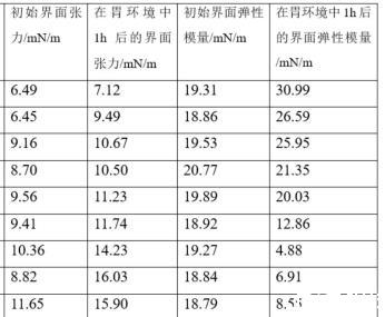 界面張力和界面模量的測定:采用界面張力儀測量儀測量油水界面的界面張力和界面模量。使用蠕動泵對水相液體進行更換,依次為不同樣品的水溶液、口腔消化液、胃消化液、小腸消化液。