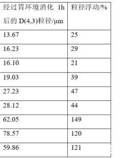 食品藥品通常需要將成分遞送到腸道中進行吸收利用,乳液是一種很好的營養成分遞送體系,通過制備成小液滴的水包油形式,可以極大提高液滴的比表面積,從而有利于后續油滴在腸道的吸收利用。然而由于胃中pH較低,且存在生物酶環境復雜、溫度高、胃蠕動等環境脅迫,乳液往往會失穩甚至破乳,會造成乳液粒徑增加、吸收利用效率低、營養物質暴露受損等,從而導致營養功能大打折扣。現有技術缺少在消化道中的觀察,從而無法制備有效的胃穩定乳液以遞送營養物質。專利CN202010448118.6用豌豆分離蛋白與菊粉在90℃條件下反應1-3h,使其發生美拉德反應,生成的結合物穩定乳液后以氯化鈣交聯制備乳液凝膠具備高胃環境下的穩定性,一方面用豌豆分離蛋白與菊粉結合的美拉德反應產物需要高溫條件下生成,另一方面高胃環境下的穩定性是通過氯化鈣交聯形成致密的凝膠網絡實現,而非乳液本身。目前為止,尚未有抗胃環境脅迫的高穩定乳液的制備的報道。