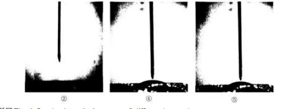 使用JGW-360A接觸角測定儀對表面活性劑溶液和3種礦石表面接觸角的測量;采用濕潤性能較好的SDBS溶液配制成8種不同表面張力的水溶液,并測定出接觸角,如圖4所示(選取礦樣a不同表面張力②④⑤時(shí)接觸角測量示意圖)。