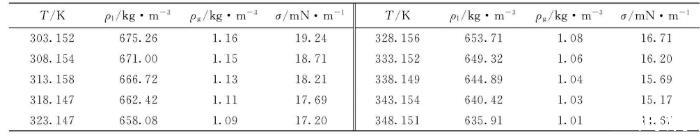 表4鄰二甲苯、間二甲苯和對二甲苯表面張力擬合參數