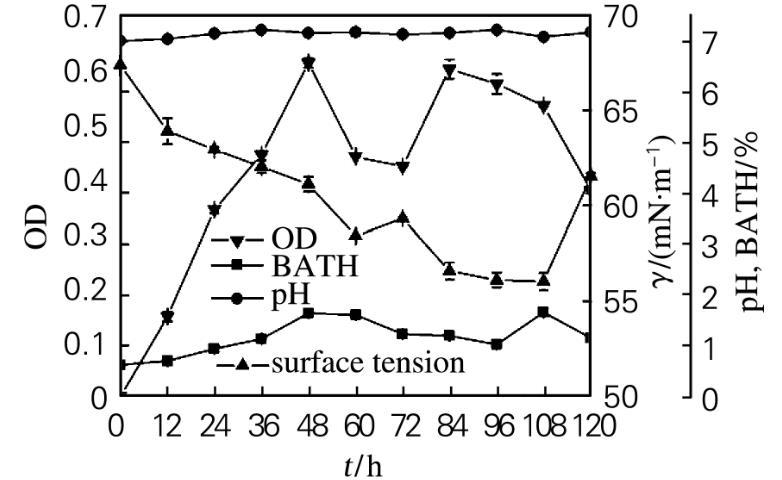 2.3生物表面活性劑產生菌的生長特性