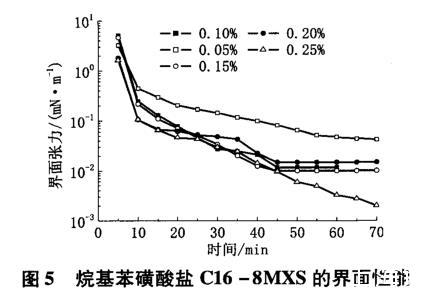 圖5烷基苯磺酸鹽C16-8MXS的界面性能