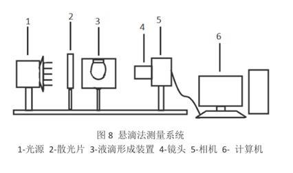 懸滴法的原理是利用液滴靜止懸掛在毛細(xì)管的管口處時,液滴的外形主要取決于重力和表面張力的平衡。通過測定懸掛著的液滴的外形參數(shù),可推算出液體表面張力。懸滴法的測量試驗(yàn)系統(tǒng)主要由光源、散光片、液滴形成裝置、鏡頭、相機(jī)、計(jì)算機(jī)等組成。測試步驟也很簡單,不需要清洗儀器,制樣完成后,接通電源,調(diào)節(jié)控溫器使溫度達(dá)到預(yù)設(shè)溫度點(diǎn)。將裝好試樣的石英比色皿和注射器置于恒溫室中,針頭必須保持垂直。一般液體恒溫時間為 30 min??刂谱⑸浔眠M(jìn)樣成滴,當(dāng)液滴接近最大直徑時,按動快門,記錄液滴圖像,將攝影膠片印制成圖像。該檢測方法表面張力測定精度也是±0.1% 。此外要注意管尖的口徑不能過大以致生成大懸滴,溫度波動會產(chǎn)生對流和振動,使懸滴不穩(wěn)定。