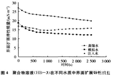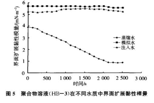 圖4聚合物溶液(HB-3)在不同水質(zhì)中界面擴(kuò)展彈性模量