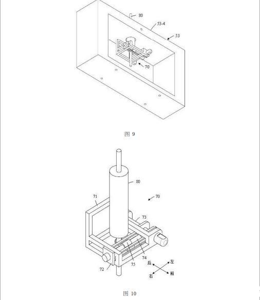 如圖9所示,注射器調(diào)節(jié)組件70固定設(shè)置于第三窗形件53的內(nèi)部空腔內(nèi)。
