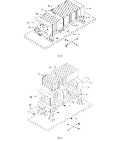 遮光罩90的上壁板、下壁板、左壁板和右壁板都為可伸縮的波紋板,使得當(dāng)?shù)谌靶渭?3沿著第一絲桿21前后移動(dòng)時(shí),遮光罩90能夠隨著第三窗形件53伸長或者縮短。