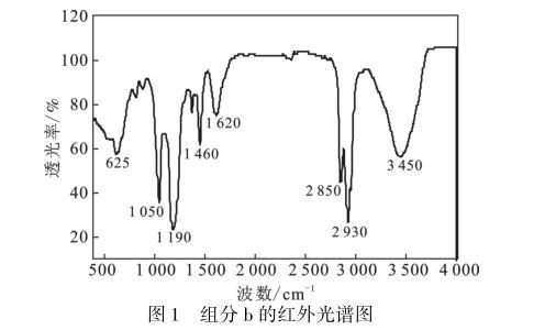 由上可知,只有組分b的界面張力達到超低,說明石油磺酸鹽中主要起作用的物質集中在組分b中,因此對組分b采用紅外光譜、質譜、核磁共振等方法測定其結構,并通過理論計算與實驗數據相結合,推斷組分b的大致分子結構。