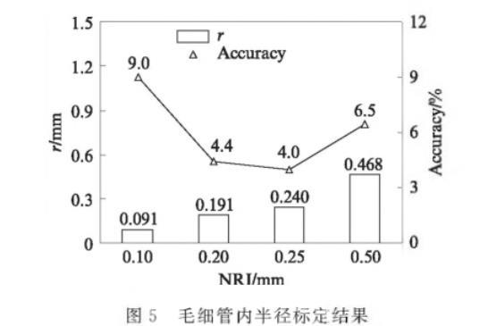 圖5毛細管內半徑標定結果