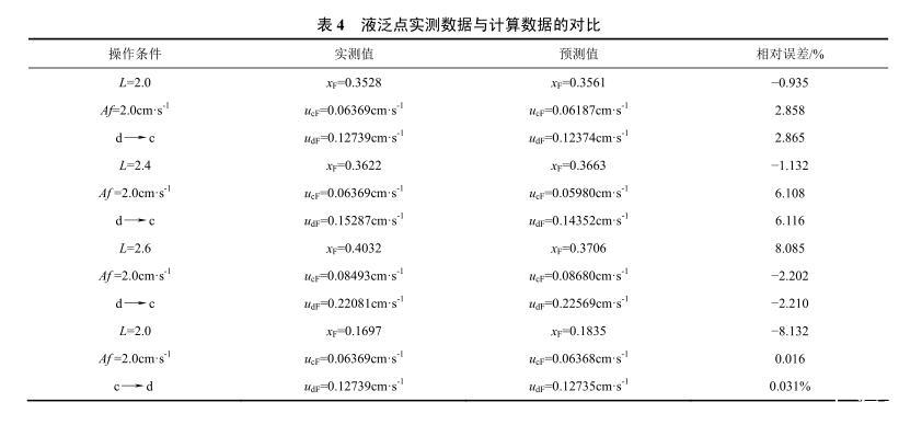 表4液泛點(diǎn)實(shí)測(cè)數(shù)據(jù)與計(jì)算數(shù)據(jù)的對(duì)比