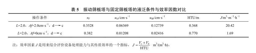 表5振動(dòng)篩板塔與固定篩板塔的液泛條件與效率因數(shù)對(duì)比