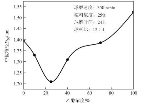 圖2采用不同濃度的乙醇溶液做球磨溶劑時(shí)微晶石墨的中位粒徑