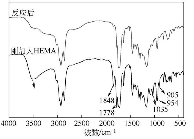 圖4 TM3與HEMA混合物反應前后紅外對比圖