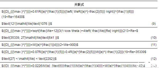 最大鋪展直徑Dmax是液滴撞擊固體表面過程中的重要參數(shù),定義相應(yīng)的液滴最大無量綱鋪展因子如式(8)所示
