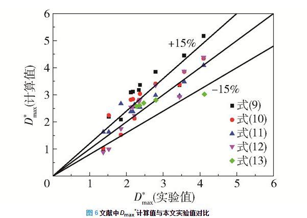 圖6文獻(xiàn)中Dmax*計(jì)算值與本文實(shí)驗(yàn)值對比