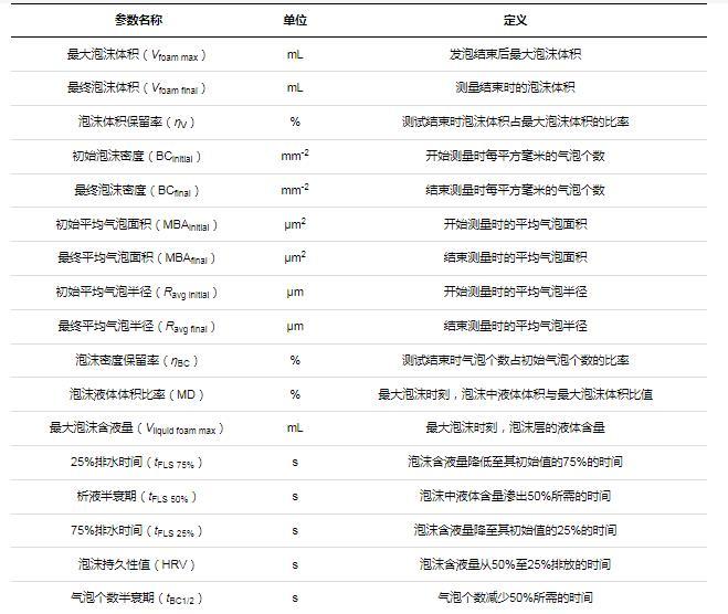 表1泡沫測試的主要參數(shù)及其定義