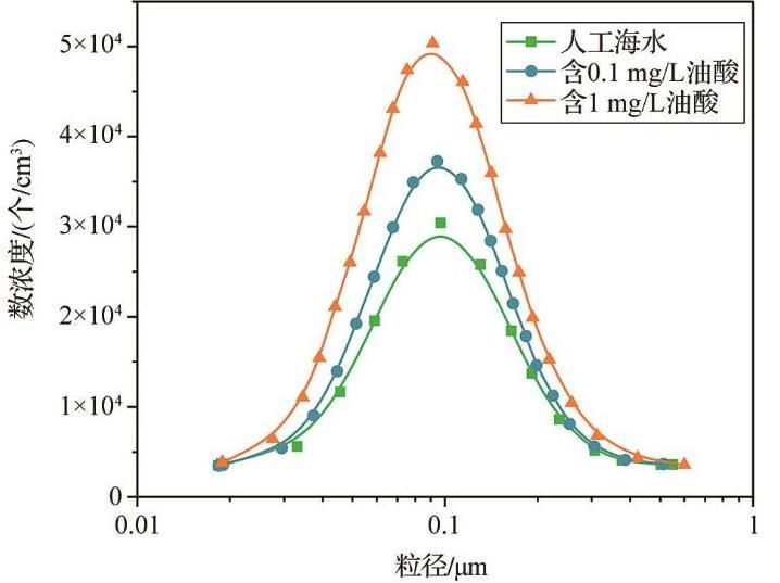 圖3油酸對人工海水產生的海洋飛沫氣溶膠(SSA)粒徑分布的影響