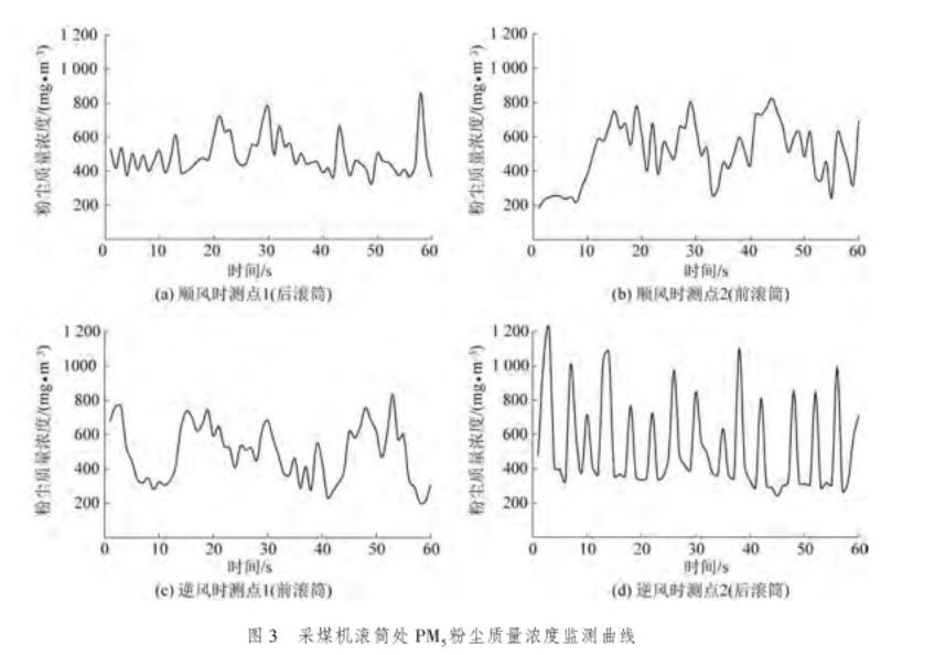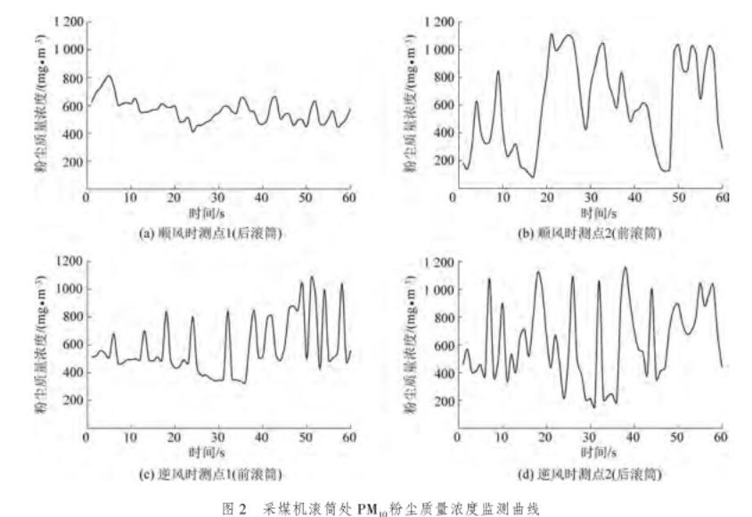圖2采煤機滾筒處PM10粉塵質量濃度監測曲線