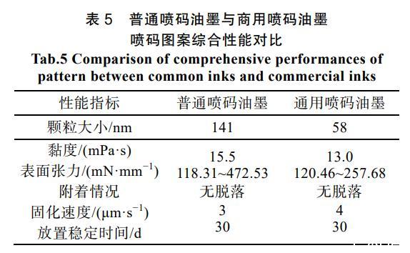 表5普通噴碼油墨與商用噴碼油墨噴碼圖案綜合性能對(duì)比