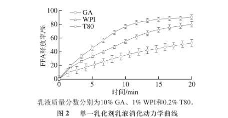圖2單一乳化劑乳液消化動力學曲線