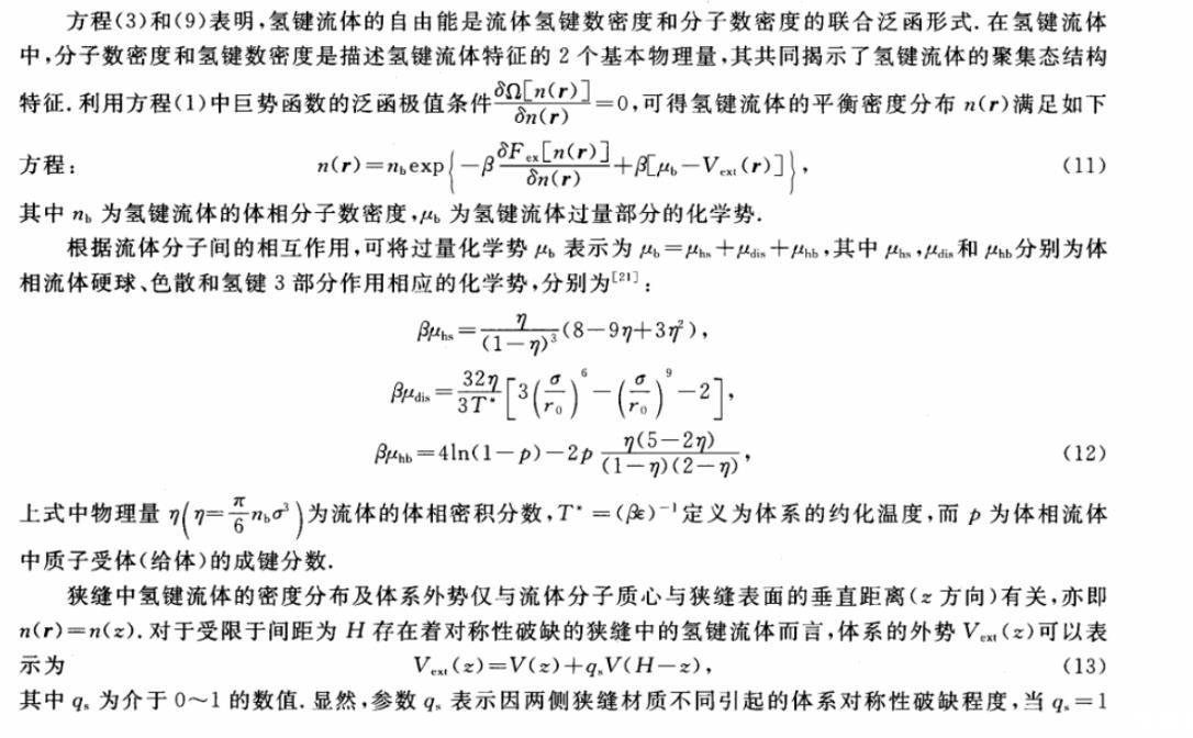 1狹縫中氫鍵流體的密度泛函理論