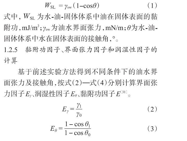 1.2.5黏附功因子、界面張力因子和潤濕性因子的計(jì)算