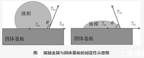 圖1熔融金屬與固體基板的潤濕性示意圖