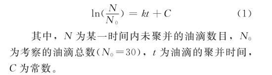 其中,N為某一時(shí)間內(nèi)未聚并的油滴數(shù)目,N0為考察的油滴總數(shù)(N0=30),t為油滴的聚并時(shí)間,C為常數(shù)。