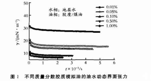 圖1不同質量分數膠質模擬油的油水動態界面張力