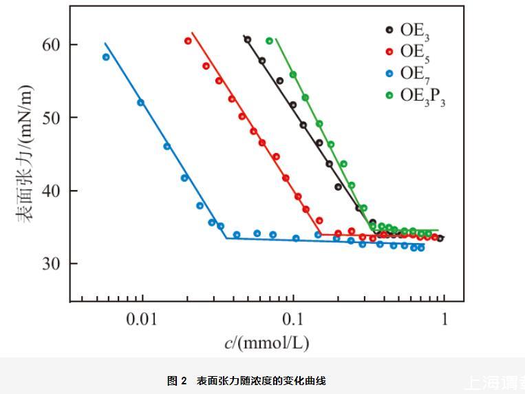 圖2表面張力隨濃度的變化曲線
