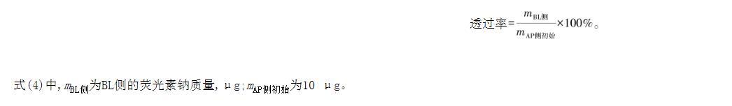 式(4)中,mBL側為BL側的熒光素鈉質量,μg;mAP側初始為10μg。