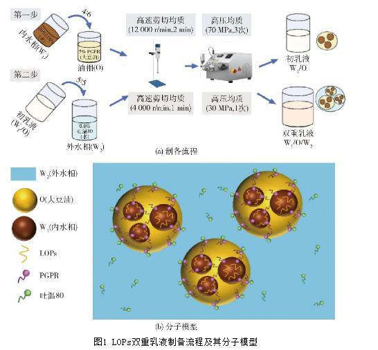 圖1 LOPs雙重乳液制備流程及其分子模型