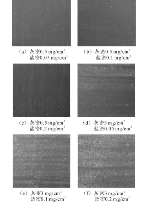憎水角測量所用的硅橡膠試片的尺寸為100 mm×100 mm×5 mm。試驗中為了保證試片處于相同環(huán)境中,用清水對試片進行清洗,并用酒精擦拭后用無紡布擦干。本試驗中的涂污方式采用固體層法中的定量涂刷法,根據(jù)IEC規(guī)程中的污層分級設置,選用灰密為0.5、3mg/cm2,鹽密值選用0.05、0.1、0.2 mg/cm2,分別代表污穢程度為“中、重、非常重”的污穢等級。涂污之前先進行打灰處理,再將污液均勻涂抹在試片上。將涂污后的試片和潔凈試片放入相同環(huán)境中,如圖2所示。