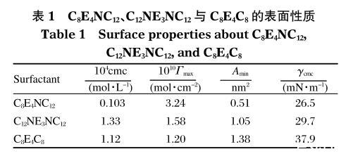 表1 C8E4NC12、C12NE3NC12與C8E4C8的表面性質(zhì)