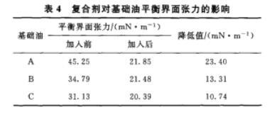 復合劑對不同基礎油界面張力的影響差異