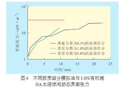 2.4有機(jī)堿OA水溶液與膠質(zhì)組分模擬油間動(dòng)態(tài)界面張力