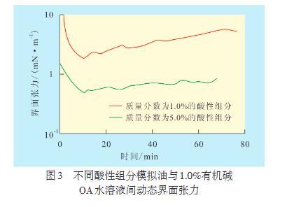 2.3有機(jī)堿OA水溶液與酸性組分模擬油間動(dòng)態(tài)界面張力