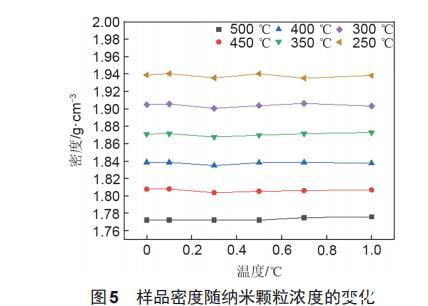在不同溫度工況點(diǎn)下,5種納米熔鹽的密度和基鹽的密度均處在同一水平線上。