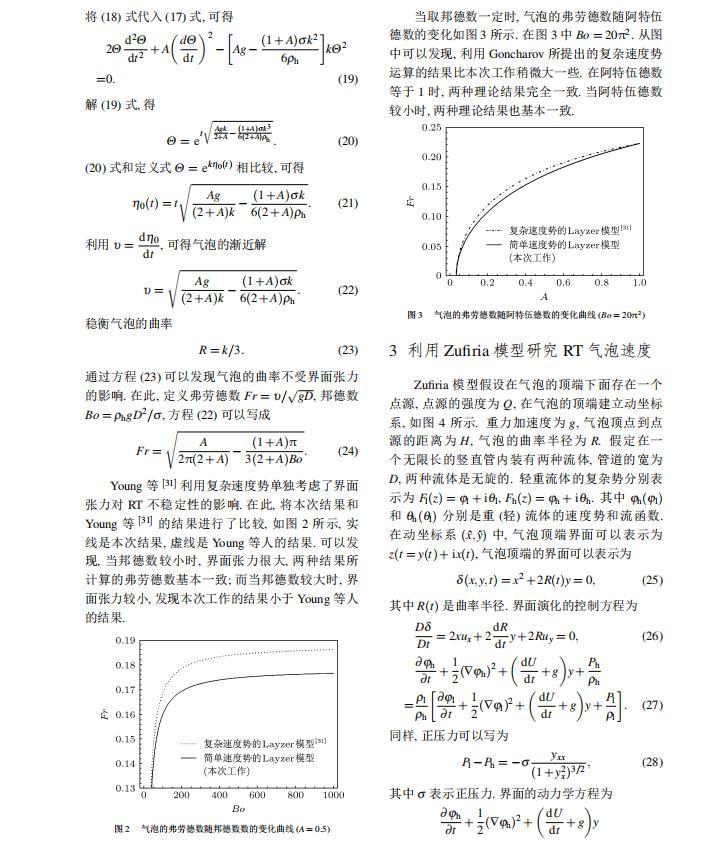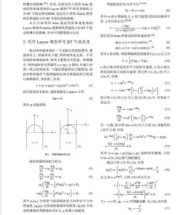 本文分別利用Sohn提出的簡(jiǎn)單速度勢(shì)的Layzer模型和Zufiria模型研究界面張力對(duì)RT不穩(wěn)定性增長(zhǎng)的影響,并對(duì)不同模型進(jìn)行比較。