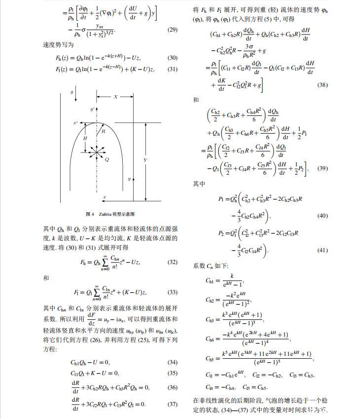 Layzer模型和Zufiria模型都是建立在理想流體之上。然而對(duì)實(shí)際流體而言,很多因素都可以影響RT不穩(wěn)定性的演化情況,如密度比、黏性、界面張力、壓縮性、外場(chǎng)加速度、Kelvin-Helmholtz不穩(wěn)定性等。Young和Sohn利用Goncharov提出的復(fù)雜速度勢(shì),將Layzer模型推廣并應(yīng)用到非理想流體中,研究了界面張力對(duì)RT不穩(wěn)定性增長(zhǎng)的影響,發(fā)現(xiàn)界面張力降低了氣泡的增長(zhǎng)速率。2011年本文的作者之一利用Zufiria模型研究了黏性對(duì)RT不穩(wěn)定性增長(zhǎng)的影響。但是,目前沒有人利用Sohn提出的簡(jiǎn)單速度勢(shì)的Layzer模型研究界面張力對(duì)RT不穩(wěn)定性的影響,也沒有人利用Zufiria模型研究界面張力對(duì)RT不穩(wěn)定性的影響。