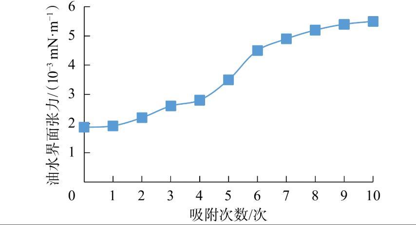圖4吸附次數對油水界面張力的影響