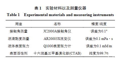 表2不同類型液體與固體的濕潤特性